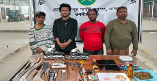 সাভারে ডাকাতির প্রস্তুতিকালে ৪ সদস্য গ্রেফতার, দেশীয় অস্ত্র উদ্ধার