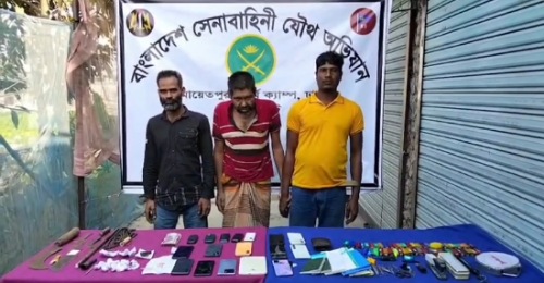 তেঁতুলঝোড়ায় সেনাবাহিনীর অভিযানে গাঁজা–ইয়াবাসহ ৩ মাদক ব্যবসায়ী আটক