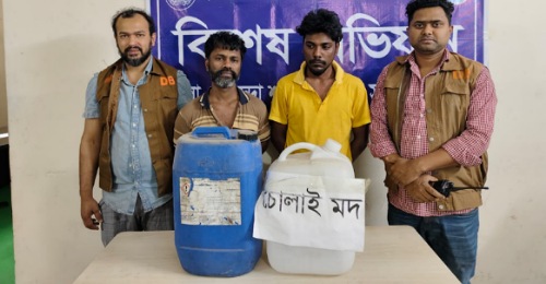 ঢাকা জেলার আশুলিয়া থানাধীন কাঠগড়া এলাকায় বিশেষ অভিযান পরিচালনা করে ৪০ লিটার চোলাই মদসহ দুই পেশাদার মাদক ব্যবসায়ীকে গ্রেফতার করেছে