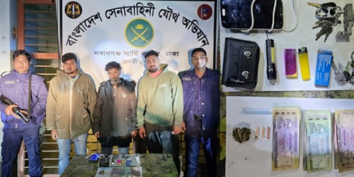 নবাবগঞ্জে সেনাবাহিনীর অভিযানে তিন মাদক কারবারি আটক