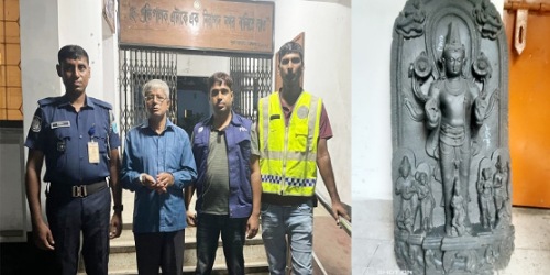 সাভারে পুলিশের অভিযানে ১৬৫ কেজি ওজনের কষ্টি পাথরের বিষ্ণু মূর্তি উদ্ধার, গ্রেপ্তার ১