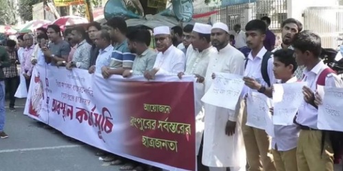 রংপুর: উত্তরবঙ্গের জীবনরেখা তিস্তা নদীকে ঘিরে ঘোষিত “তিস্তা মহা-পরিকল্পনা” দ্রুত বাস্তবায়নের দাবিতে রংপুরে ছাত্র ও সাধারণ জনগণ অবস্থান কর্মসূচি পালন