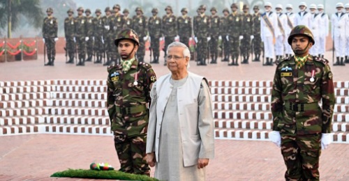 মহান বিজয় দিবসে জাতীয় স্মৃতিসৌধে বীর শহীদদের প্রতি শ্রদ্ধা জানালেন প্রধান উপদেষ্টা ড. মুহাম্মদ ইউনূস