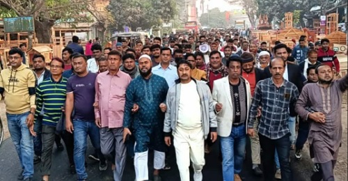 ইনকিলাব মঞ্চের মুখপাত্র শরীফ ওসমান হাদীর ওপর সন্ত্রাসী গুলিবর্ষণের ঘটনার প্রতিবাদে যশোরের শার্শা উপজেলার বাগআঁচড়ায় বিএনপির উদ্যোগে প্রতিবাদ মিছিল অনুষ্ঠিত